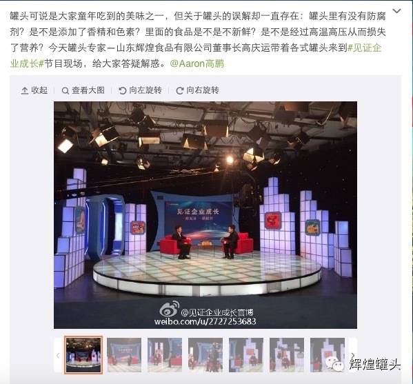 20141223日山東輝煌食品有限公司董事長高慶運先生,作為罐頭行業(yè)的專家, 應邀參加CCTV“見證企業(yè)成長”欄目,為消費者解讀罐頭