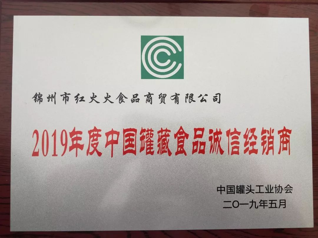 我公司經(jīng)銷商錦州紅火火商貿有限公司榮獲“2019年度中國罐藏食品誠信經(jīng)銷商”殊榮。